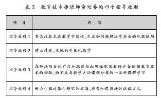 (2)在教学方面,重点关注了教育技术在教师培养过程中的作用,并提供了四个指导原则,强调了技术在教学过程中的重要作用,以及教师在自我能力提升过程中有效掌握和使用技术的必要性和迫切性。