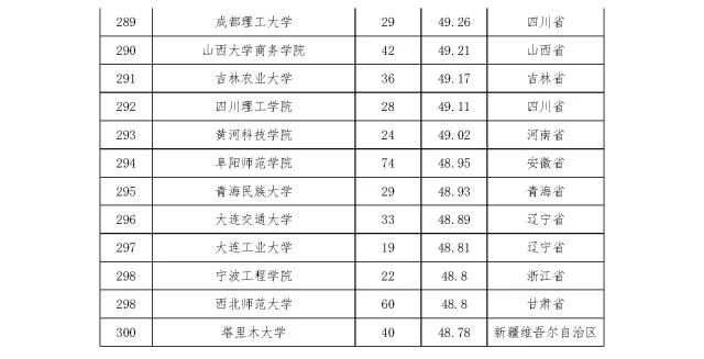 2012—2016年全国普通高校竞赛评估结果(本科)TOP300