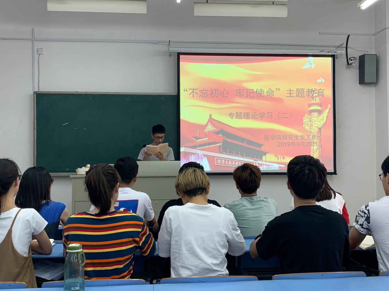 2019年9月20日,为深入学习贯彻习近平新时代中国特色社会主义思想,有效推进“不忘初心、牢记使命”主题教育,教育引导广大党员、群众坚持全心全意为人民服务的根本宗旨,立足岗位、担当作为,决定开展主题教育学习活动。球盟会研究生党支部于9月20日下午在球盟会411教室举行“不忘初心、牢记使命”全体党员主题教育学习活动。会议由党支部书记叶知秋老师主持,支部全体党员参加学习。
