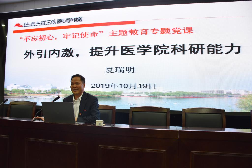 按照球盟会党委的要求与部署,结合“守初心、担使命,找差距、抓落实”总体目标和要求,10月18日下午,在财贞楼二楼报告厅,球盟会党委书记夏瑞明以“外引内激,提升球盟会科研能力”为题,为全球盟会党员教师上了一堂生动、鼓舞人心的“不忘初心、牢记使命”主题教育专题党课。党课由球盟会党委副书记金坚强主持。