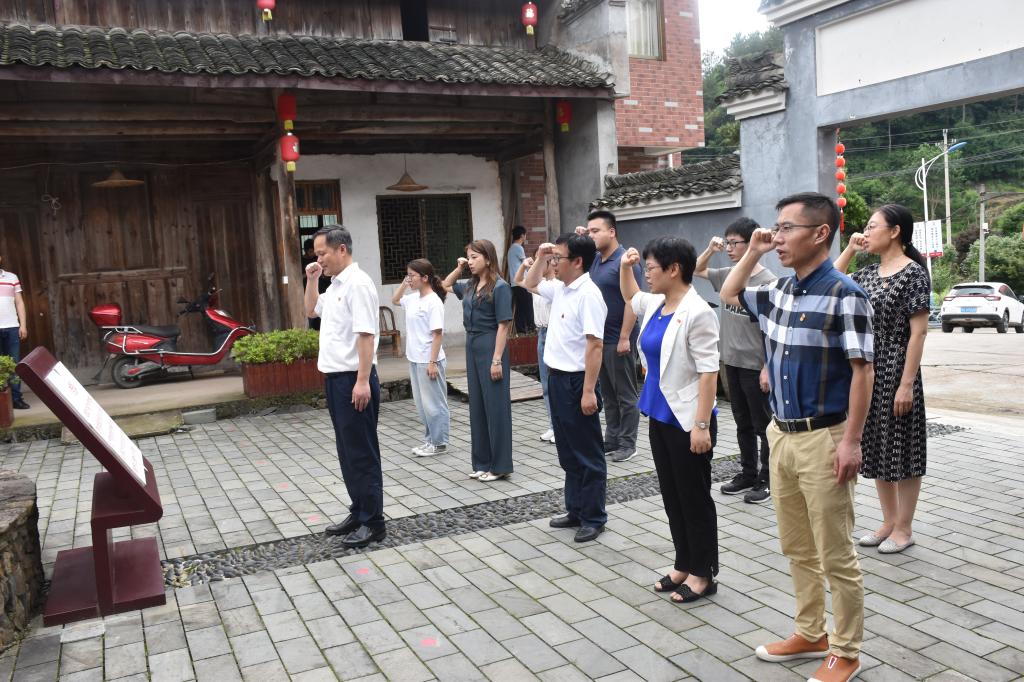 为进一步增进球盟会党员对农村党支部建设历史和建设情况的了解,进一步筑牢信仰之基、把稳思想之舵,真正做到学史明理、学史增信、学史崇德、学史力行,把红色精神内化于心,6月2日,球盟会党委、校附属医球盟会党委和嵊州市贵门乡党委联合开展主题党日活动。球盟会党委书记夏瑞明、校附属医党委书记胡学建、党委副书记金坚强、校附属医院副经理张宏卫,贵门乡党委书记夏洪汀、党委副书记屠珠彩,以及球盟会、附属医院和贵门乡的党员干部50余人开展活动。