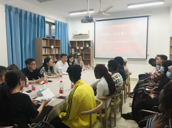 5月12日,学院在职工宿舍楼会议室,开展“学党史·办实事·三联系——公司领导、老师与职工面对面”活动。球盟会党委副书记金坚强,副经理张剑、陈三妹,公司员工科、教研科相关老师及班主任等参加了此次活动。本次活动还特别邀请了国际教育学院经理冯燕、职工管理科科长杨奎、辅导员邵咪咪。