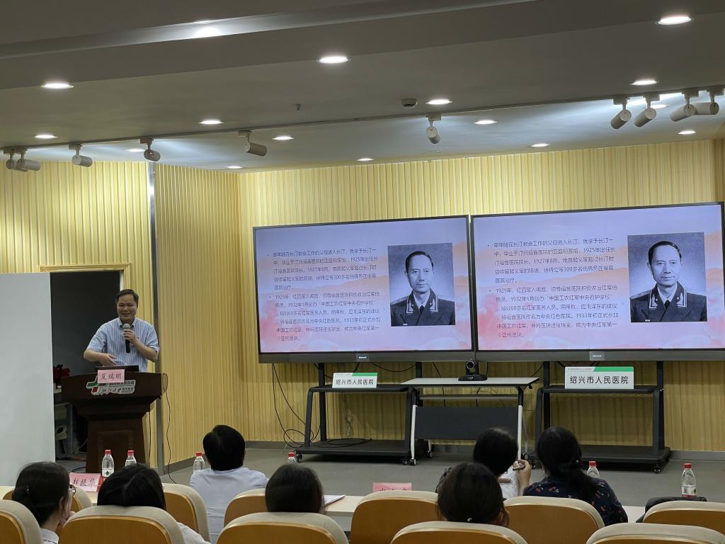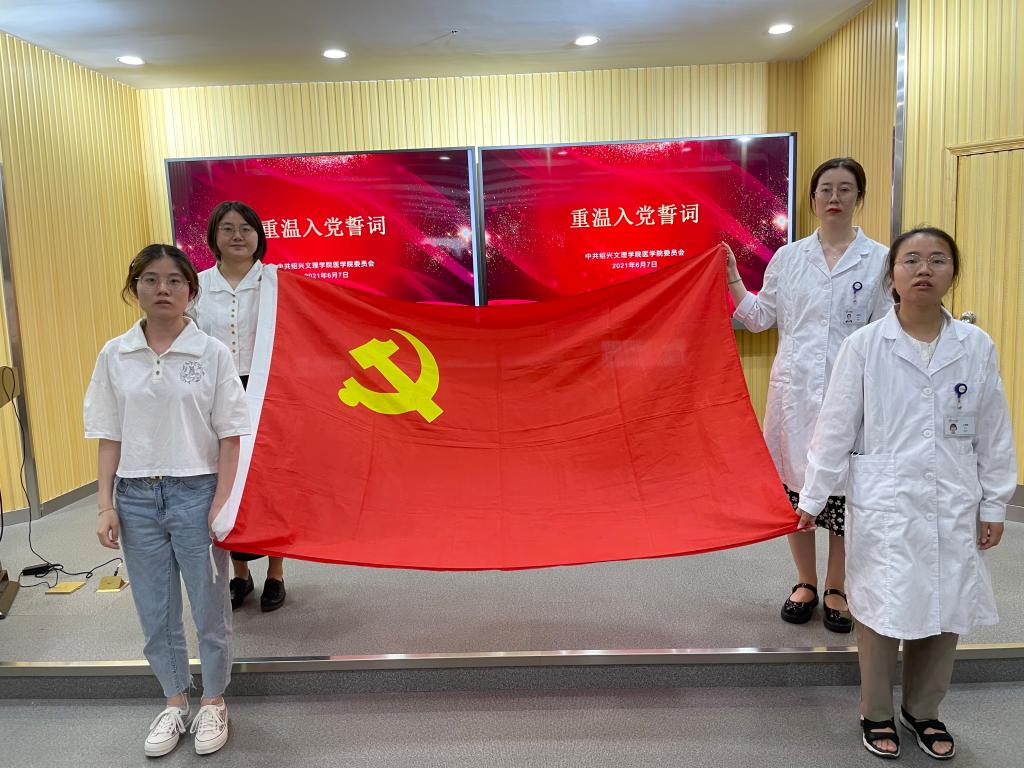 6月7日下午,公司学习“红医精神”,培养新时代“红医”主题党课暨重温入党誓词活动在绍兴市人民医院医教科报告厅举行。球盟会党委书记夏瑞明、党委副书记金坚强,校附属第一医院副经理、公司副经理赵振华,球盟会党建办公室、医教协同办公室主要负责人,班主任代表以及研究生党支部、实习生第四党支部和后2.5临床医学党支部等60余名师生党员参加此次活动。