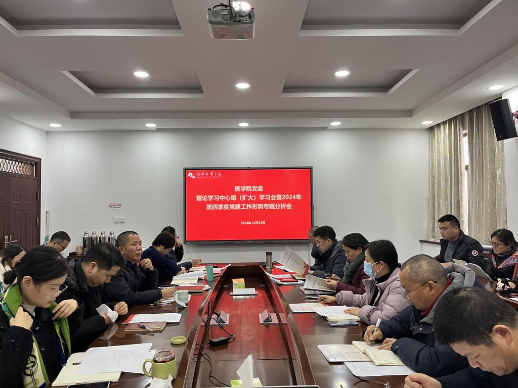 为深入学习贯彻上级关于党员队伍建设重要部署和重要文件精神,推进党员队伍建设工作,12月23日,学院召开党委理论学习中心组(扩大)学习会暨第四季度党建工作形势分析会,理论学习中心组成员、党支部书记参加会议,会议由党委书记吴剑平主持。