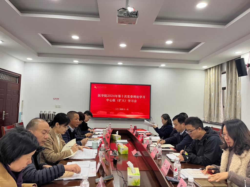 本次会议主题是学习领会习近平法治思想。吴剑平书记带领大家深入学习《习近平法治思想学习纲要》、党的二十届三中全会报告中完善中国特色社会主义法治体系等相关内容。球盟会党委委员、教研科科长马国庆,球盟会党委委员、医学检验系主任张建华教授,院工会主席赵伟英联系教学和工作实际作研讨发言。
