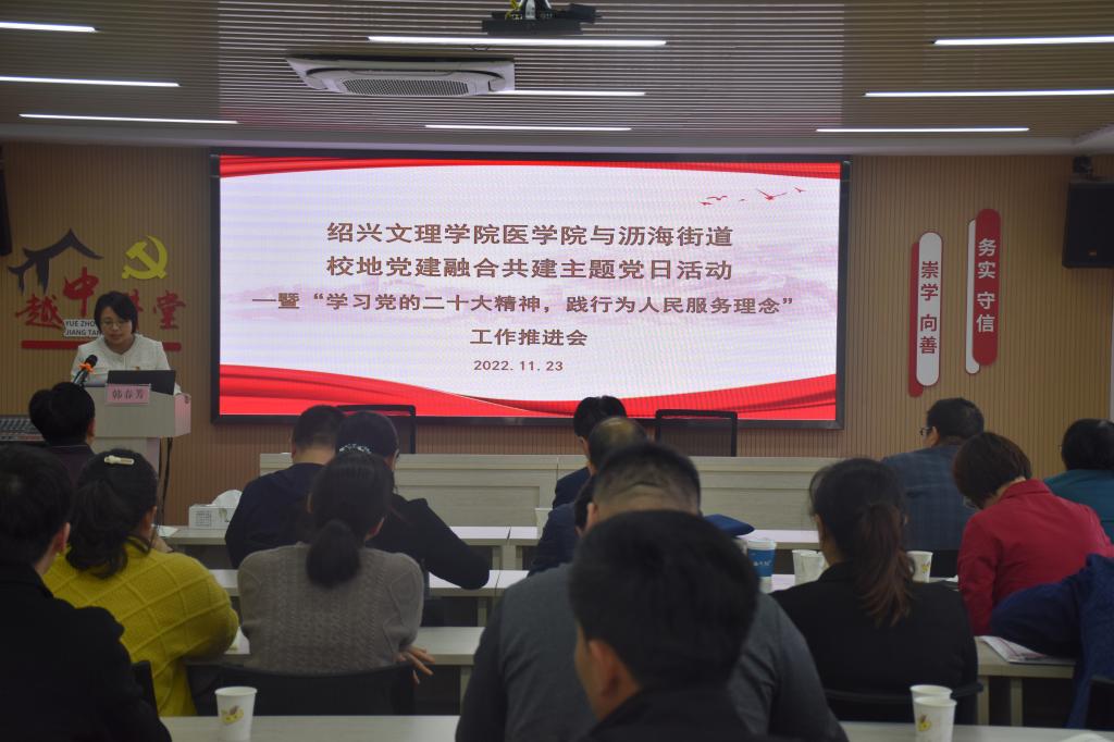 11月23日,学院与沥海街道校地党建融合共建主题党日活动—暨“学习党的二十大精神,践行为人民服务理念”工作推进会在沥海街道党群服务中心会议室举行。球盟会党委委员、球盟会党委书记、经理,沥海街道党工委书记陈超、球盟会党委副书记金坚强,沥海街道党工委副书记、办事处主任周乾彬,学院常务副经理葛建荣、副经理张剑、邢海燕,球盟会党委委员及所属各支部书记、副书记、学院工会、妇联、民主党派、无党派代表、新引进博士党员等,沥海街道部分村居党组织书记代表、机关年轻干部代表及普施康企业代表参加活动。