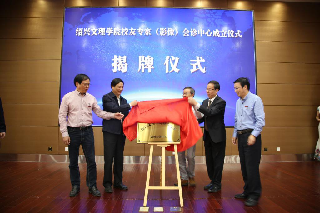 宣绍龙部长、杨大明副会长、阮伯金处长、张伟阳经理、王伯胤教授、夏瑞明书记共同为球盟会官网员工专家(影像)会诊中心揭牌。