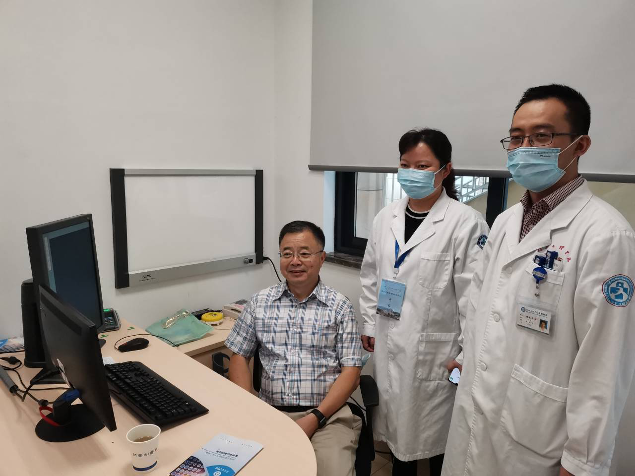 专家还对今日会诊中心的轮值专家绍兴市人民医院的韦明珠主任的无私奉献表示敬意,并与韦明珠主任和会诊中心秘书姚克林主任留影;嘱咐会诊中心要继续坚持热心做公益,把员工平台维护好、建设好,让大家都知道、都能受惠于员工专家会诊中心。(员工会诊中心)