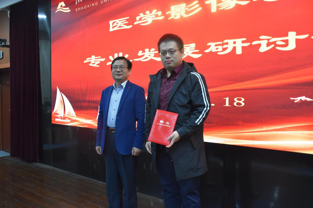 金坚强副书记为医学影像学新生班主任陶知知老师颁发聘书。