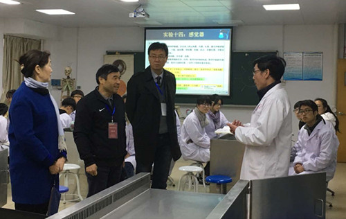 14:45,在张剑副经理陪同下,李俊伟教授走访考察了医学实验中心的医学影像PACS医学实验室、模拟手术室、急救室、OSCE考试中心、护理技能实训室、模拟重症监护病房、ECS控制室等多个实验室,观摩实验教学,并不时拍照、询问,听取介绍。