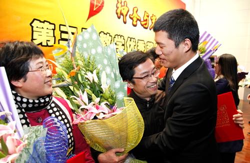 周达军书记在讲话中表示:“三年来,每次听到《神圣与光荣》的旋律或朗诵,我都非常激动。这是对教师职业的肯定和歌颂,是对教师辛勤劳动的赞扬。我代表球盟会党委行政向所有获奖教师表示由衷的祝贺和感谢!”周书记指出,每一个教学工作者都面对着“三问”,即培养什么样的人、如何培养人、谁来培养人,学校也一直在积极思考、探索和实践;刚刚结束的教学工作会议形成了共识——人才培养是高校的根本使命和神圣职责,提高人才培养质量是高校内涵式发展、转型发展的第一标准,我们要以十八大精神为指引,创新机制,改革模式,实现人才培养质量的显著提高,而这要依靠广大教师。周书记说:“根据省教育研究院公布的2012年毕业生质量评估,公司毕业生对学校、老师的满意度排名全省第四。我仍然用首届教学优秀奖颁奖晚会上我的结束语来表达我今天的感受——我们在学术研究等方面和高水平大学有差距,但是我们对员工的关心、责任心,我们为员工付出的心血、产生的效果,并不逊色。我们可以自信地对家长们说:‘放心地把孩子交给我们吧,我们一定会把孩子们培养成才,培养成合格的社会主义接班人!’”