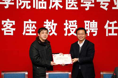 寿永明副董事长对大家的表态支持表示衷心感谢,对新聘客座教授表示祝贺。同时他指出,今年4月底前,学校就要提出申请、拟在2015年下半年接受教育部临床医学专业认证工作委员会对公司临床医学专业进行认证,而目前离各项指标要求还有一定差距,时间紧、任务艰巨。他认为这也是机遇和挑战,鼓励大家要努力抓住机遇,以学校创建绍兴大学为契机,进一步深化校企合作、产学结合,通过此次与绍兴市各大医疗卫生机构的合作,在全校起到一个良好的示范作用。最后他号召大家要加强合作,为学校进一步发展、上新台阶添砖加瓦,为地方百姓的健康事业发展作贡献。