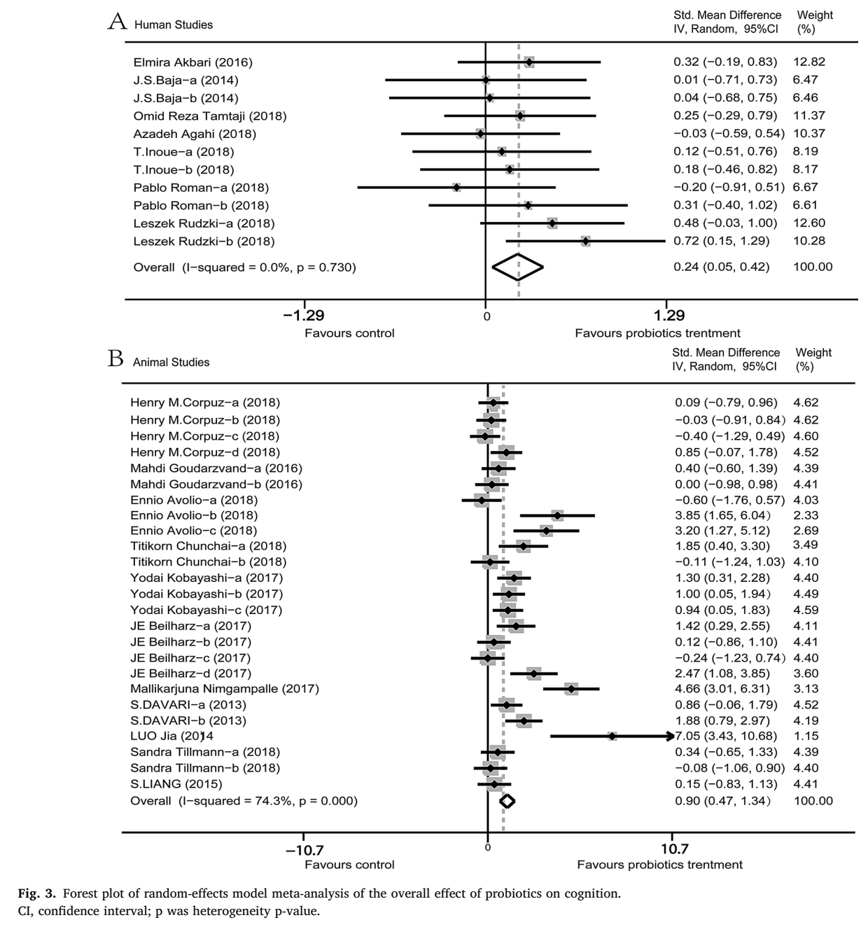 题目:益生菌可改善患者和动物的认知障碍:一项系统综述和荟萃分析