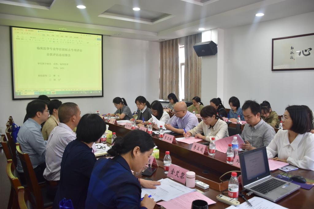 专项核验工作领导小组副组长张剑就2023年临床医学学位授权点专项核验工作自评报告进行解读;副经理金欣作各基地材料准备工作情况说明。