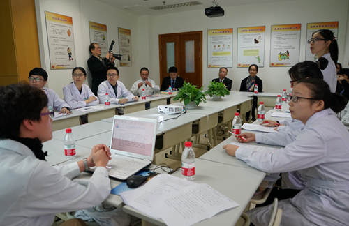 在住院病房,专家组先后走访消化内科教研室、心血管内科教研室、外科教研室、妇科教研室、儿科教研室等,现场观摩病例讨论和教学查房。师生互动活跃,问题探讨深入,教与学的效果充分体现。考察中,专家组就公司团队队伍建设、教学管理、员工培养、考核和教学设备等情况与院领导、教研室、相关科主任等进行交谈。专家还考察了医院教研室、PBL教室,查阅相关教学资料,全面了解临床教学情况。