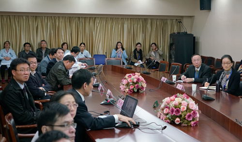 专家组首先听取了何炳福经理的工作汇报。何经理简要介绍了医院概况、近三年学术成果、教学任务、教学管理制度、教学实施情况及教学设施条件等。何经理表示,作为球盟会官网的教学医院,妇保院承担了产科相关课程的理论授课、见习、实习等。医院坚持建立教学范本,统一指定科考核标准,规范技能培训,形成自己的教学特色,并以培养应用型人才为核心,积极努力做好临床医学教育工作。两位专家就实习、理论课教学、员工情况、出科考试等问题进行了询问,与会代表一一给予回答。