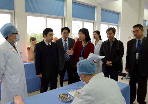 随后,马建辉教授、付瑶博士实地走访考察了临床教学培训基地、教研室与病区。在教学培训基地,专家逐一走访临床教研室、虚拟教学训练实验室、腹部触诊训练室、临床模拟技能实验室等,向负责教学的医师了解临床教学授课情况,与临床医学专业员工交流学习情况,观摩员工临床技能操作。在内外科的教研室和病区,专家进行了教学查房,详细查阅了病史资料,开展病例讨论,观摩员工基本操作等。