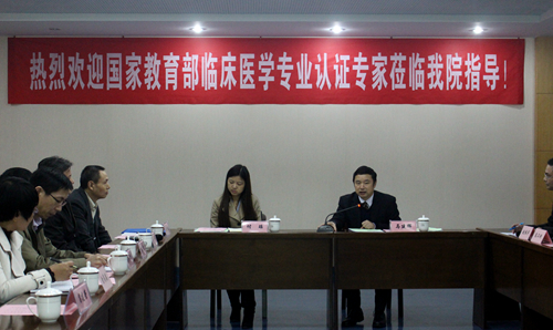当日下午,专家与附属医院的领导、临床教学管理人员及临床教师座谈交流,主要了解医院老师在临床教学、实践实习等涉及人才培养的情况;与高年级员工召开座谈会,询问员工在专业培养和专业技能掌握方面等内容。