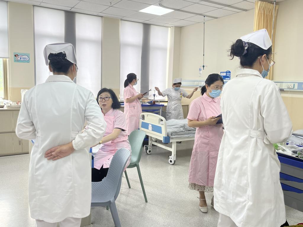 本次技能强化根据护理临床实习的需要,以小组为单位进行。考场共设置5个站点,员工先抽取考核的案例背景,进行团队讨论和初步分析之后,进入考场接受老师的提问。考场内老师以病例背景为基础,一步一步提出疾病的演变进展。员工根据老师提供的病情演变情况,提出相应护理诊断、护理措施、健康教育等,并阐述诊断理由及分析思路。理论回答之后,老师根据员工提出的护理措施,对其进行相应的技能操作考核。