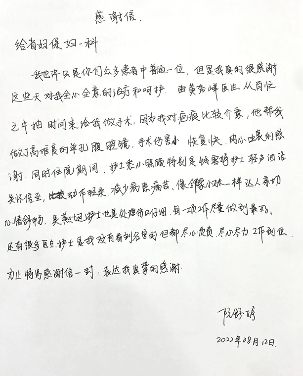 实习是员工成长发展的关键阶段,护理系员工在实习阶段的行为也是校园教育的综合体现。护理系19级员工在实习当中的表现获得患者认可,获得感谢信。