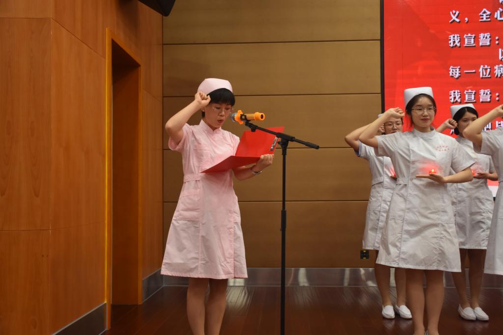 在2002届优秀员工吕巧霞的领誓下,全体护生举起右手,庄严宣誓,表达了献身护理事业,奉行革命的人道主义精神,坚守救死扶伤的信念,履行“保存生命、减轻痛苦、促进健康”的职责。