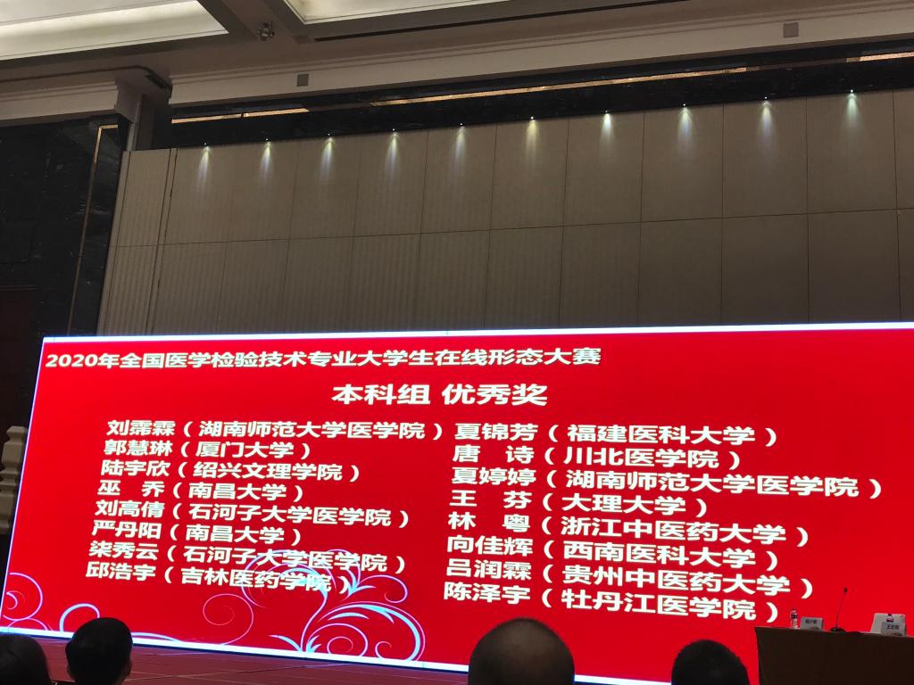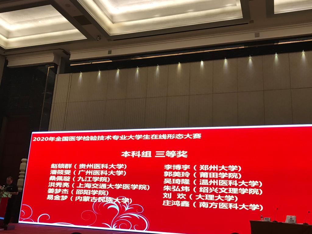 经过激烈角逐,我系医学检验技术171班员工朱弘炜和陆宇欣分别荣获本科组三等奖和优秀奖。