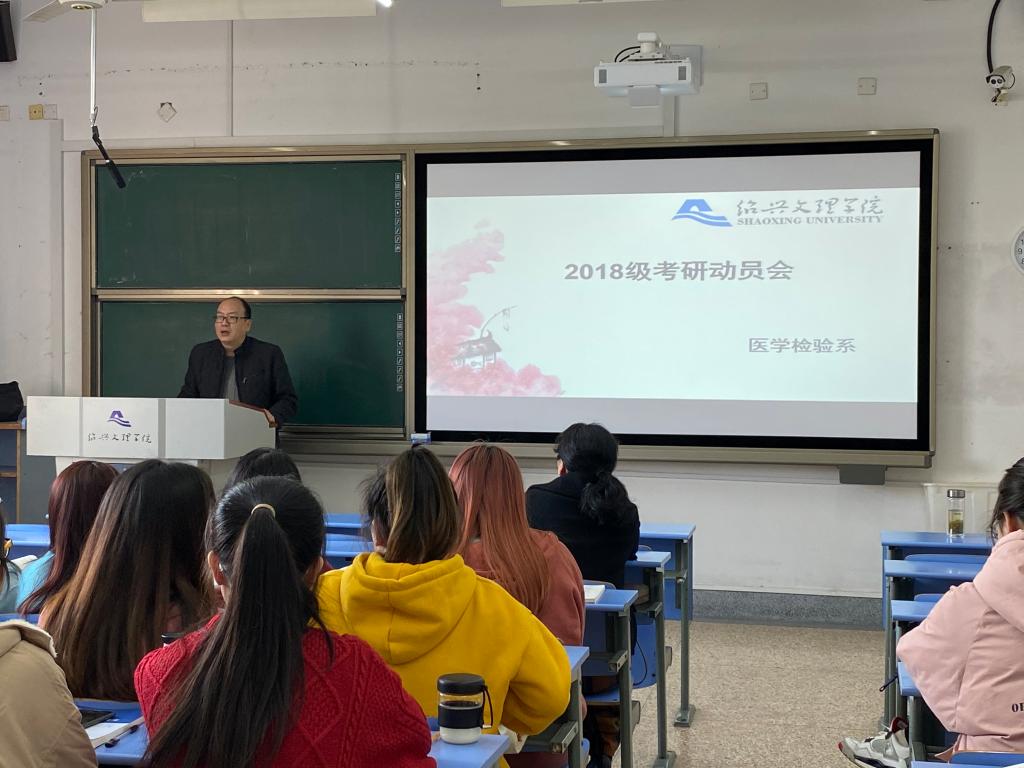 3月22日,医学检验系于财贞楼309室举行2018级医学检验技术专业员工考研动员大会。本次动员大会由检验系副主任刘晓瑜老师主持,检验系主任张建华教授、医检181班班主任陈佳玉教授参会。