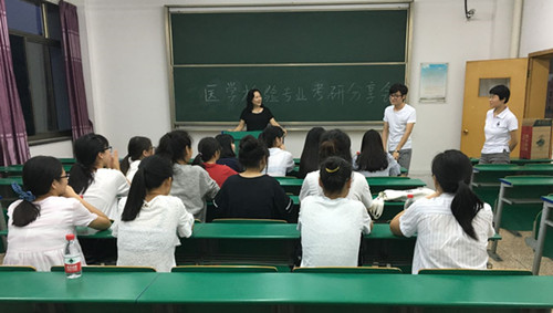 5月25日晚7:00,医学检验技术专业在财贞楼407教室举办考研分享会。分享会由医学检验系主任刘丽华教授主持,班主任岳文燕和本专业14、15级的20余名员工参加分享会。