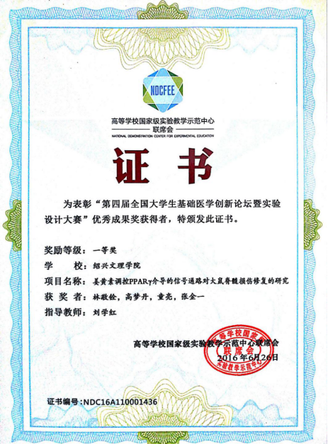 公司林敬铨等4位同学获“第四届全国老员工基础医学创新论坛暨实验设计大赛”一等奖,并受到优秀成果奖表彰。该项目由医学实验中心刘学红主任指导。