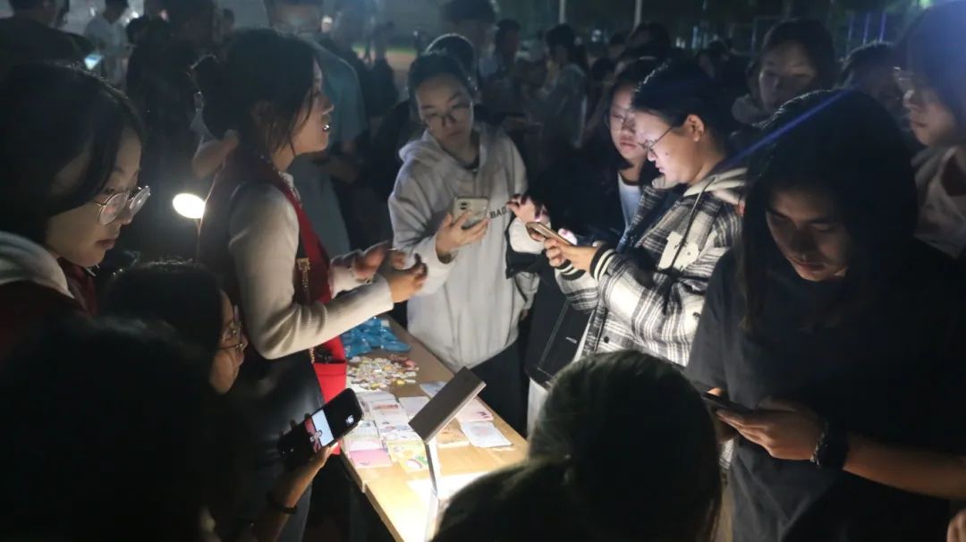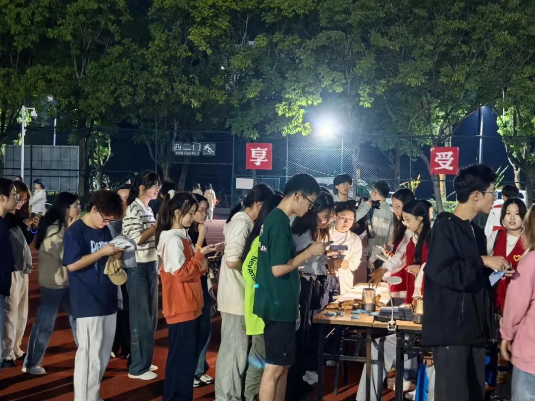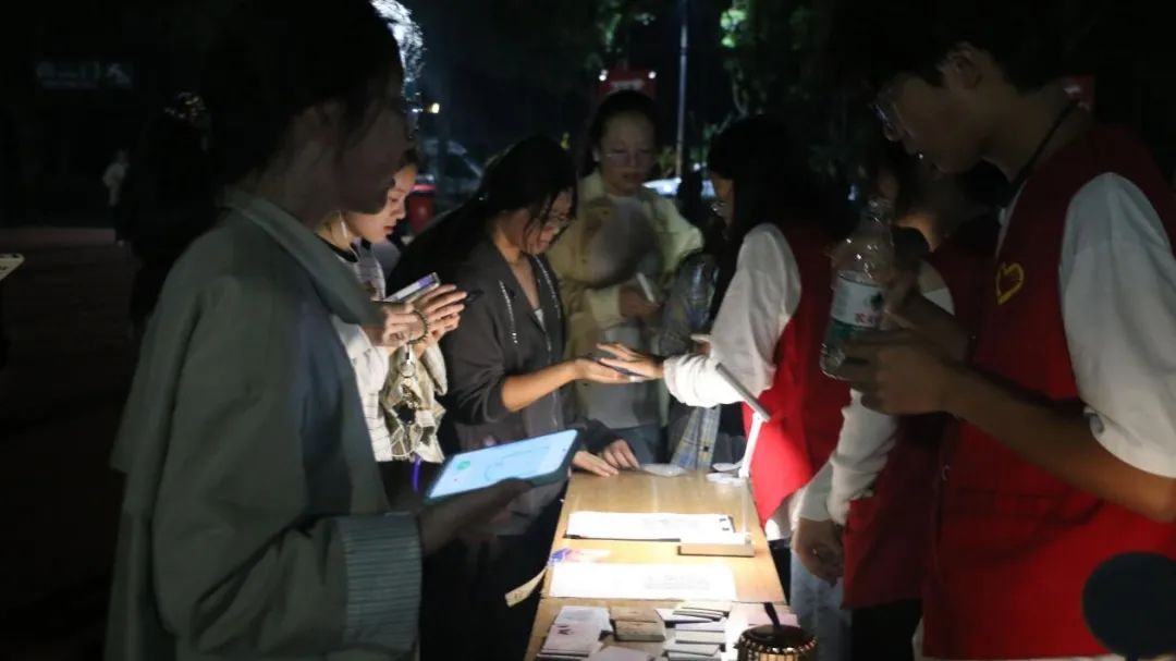 荧光点点,神采奕奕。同学们排队井然,有序领取荧光手环,映照出青春的律动与希望,点亮了此处的夜晚。