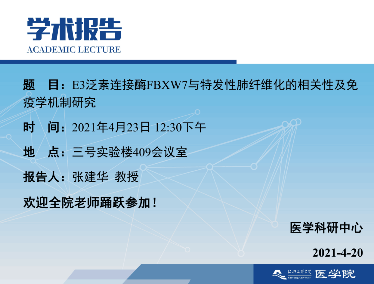 【学术沙龙】E3泛素连接酶FBXW7与特发性肺纤维化的相关性及免疫学机制研究