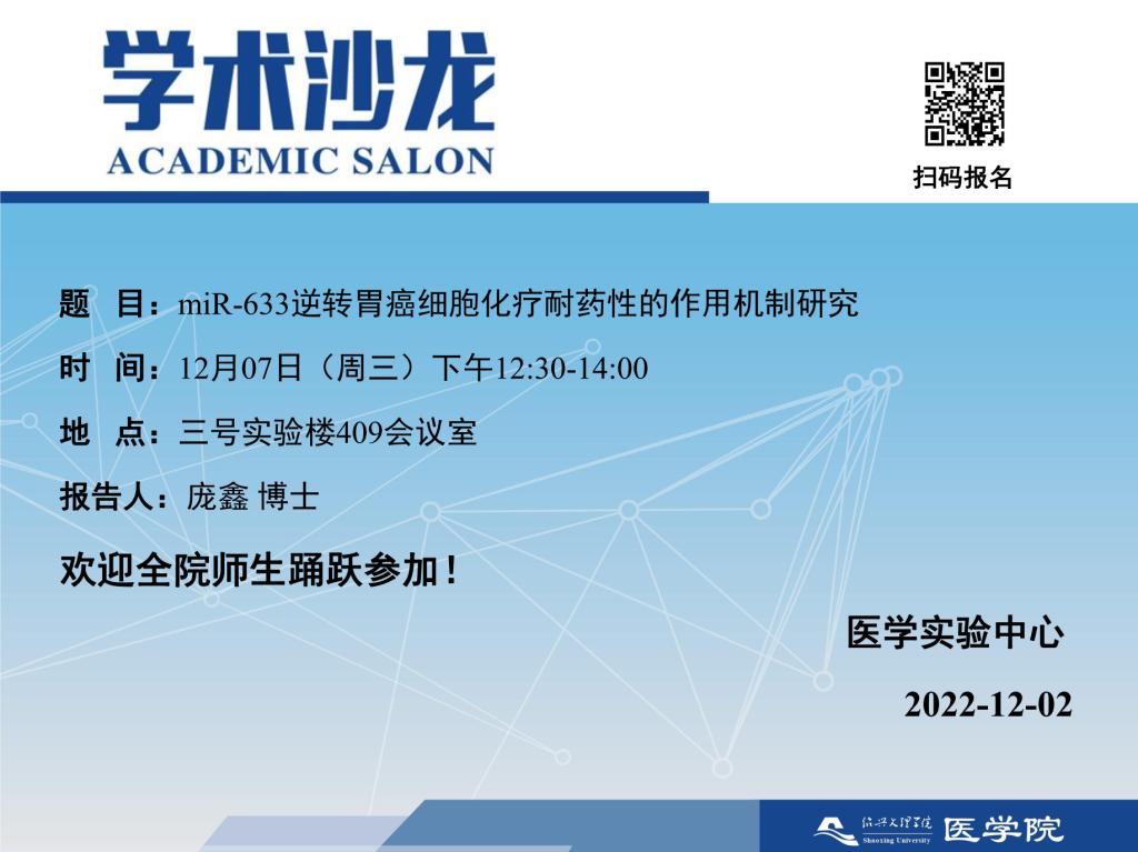 【学术沙龙】miR-633逆转胃癌细胞化疗耐药性的作用机制研究