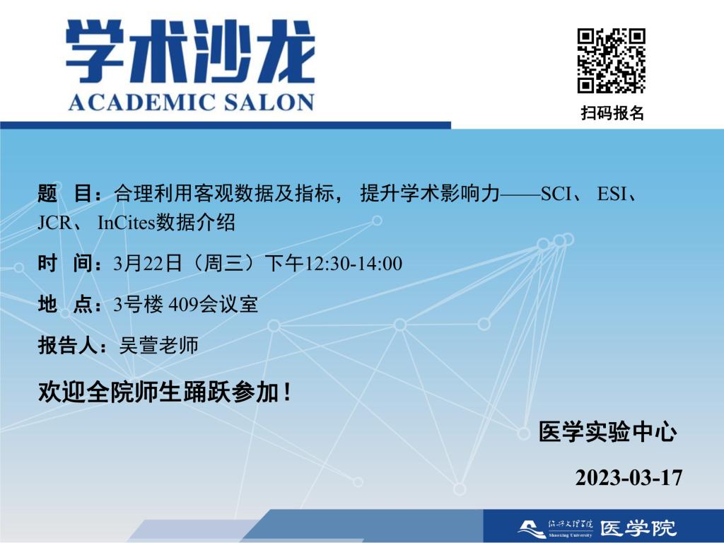 【学术沙龙】合理利用客观数据及指标, 提升学术影响力——SCI、 ESI、 JCR、 InCites数据介绍