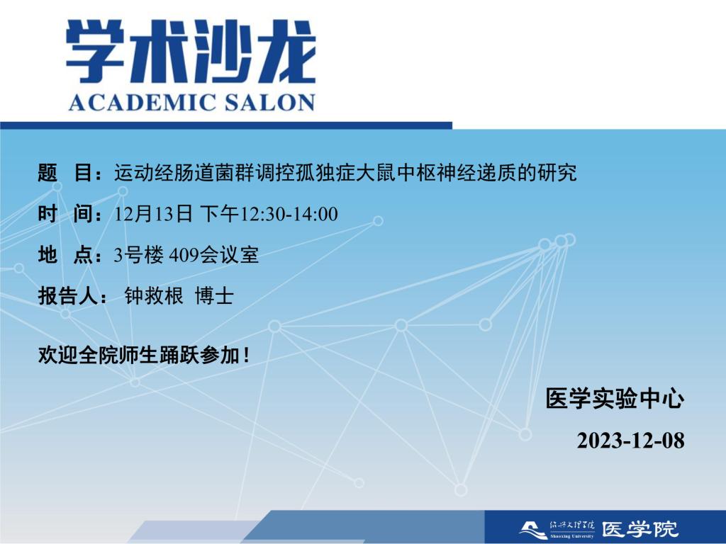 【学术沙龙】运动经肠道菌群调控孤独症大鼠中枢神经递质的研究