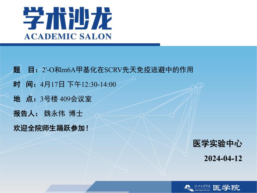 【学术沙龙】2'-O和m6A甲基化在SCRV先天免疫逃避中的作用