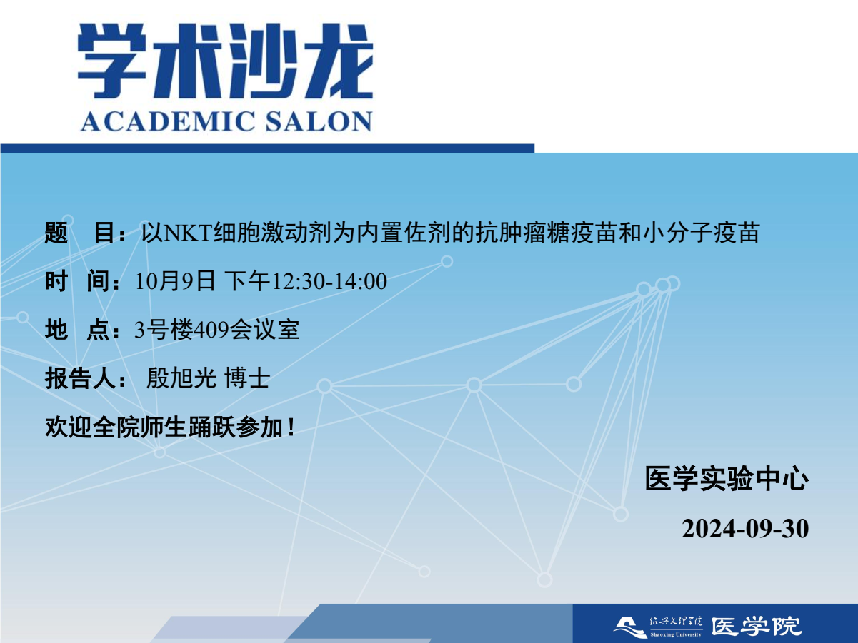 【学术沙龙】以NKT细胞激动剂为内置佐剂的抗肿瘤疫苗和小分子疫苗