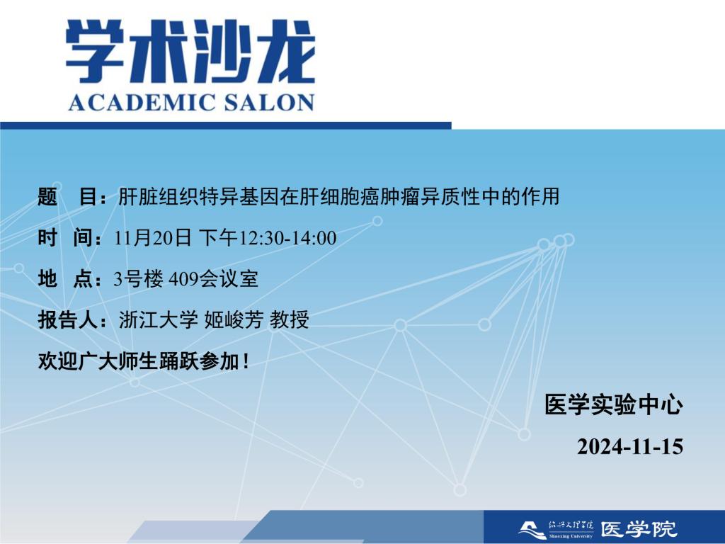 【学术沙龙】肝脏组织特异基因在肝细胞癌肿瘤异质性中的作用