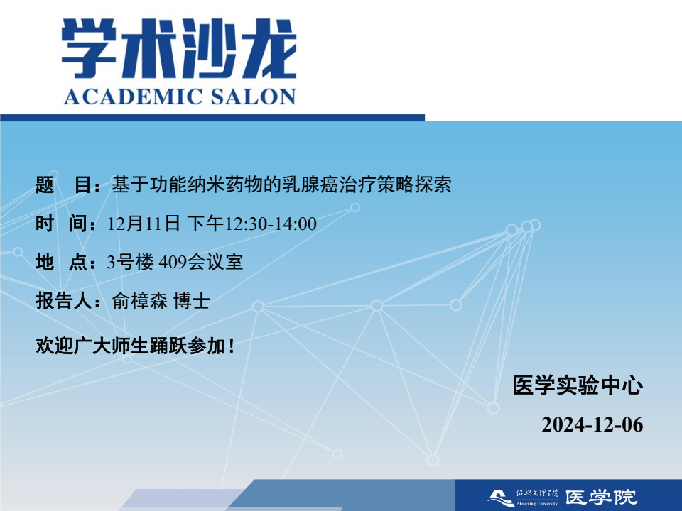 【学术沙龙】基于功能纳米药物的乳腺癌治疗策略探索