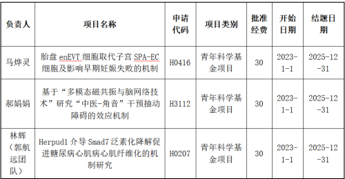 近日,2022年度国家自然科学基金项目评审结果正式揭晓。公司获批国家自然科学基金青年项目2项,分别是基础医学部马烨灵博士主持的“胎盘enEVT细胞取代子宫SPA-EC细胞及影响早期妊娠失败的机制”和临床医学部郝娟娟博士主持的“基于‘多模态磁共振与脑网络技术’研究‘中医-角音’干预抽动障碍的效应机制”。另外,临床医学部郭航远、池菊芳的心血管团队除了获得多项国自、省部级课题外,今年还申报了黄酒和康复两个省部级奖。