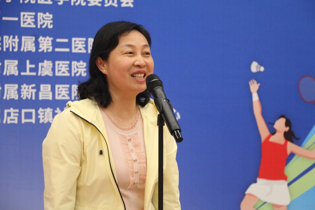 王建英主任宣布第二届球盟会-各附属医院春季荧光运动会正式开始。