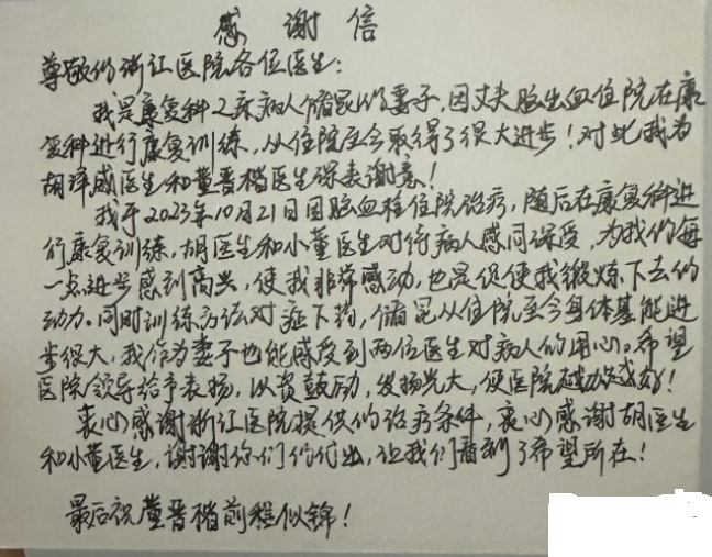 我系康复治疗学专业201班董晋楷同学在浙江医院实习期间,对病人感同身受,为患者康复尽心尽力,充分利用自己所学知识帮助患者最大程度实现功能恢复,深受病患认可,其以自身实际行动再次展示了康复医学系高水平应用型人才培养成果。康复医学系全体同学今后需以董晋楷同学为榜样,努力学习专业知识,进一步加强医学人文素养。