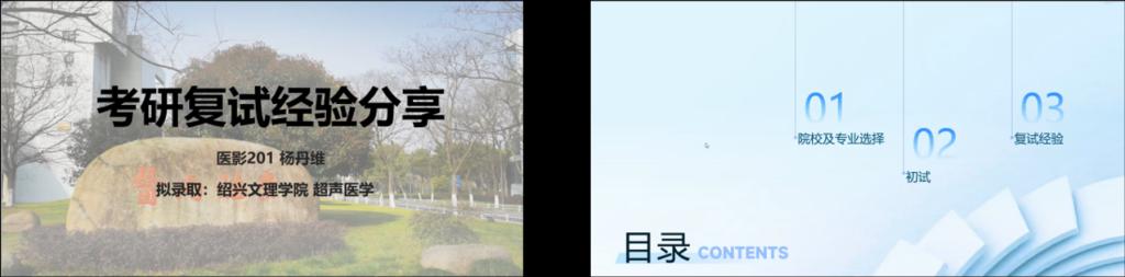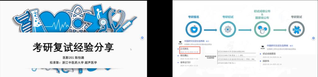为充分发挥优秀学子的榜样引领作用,帮助员工明确考研目标、掌握备考技巧,医学影像系于4月29日19时在线上举办了一场别开生面的考研经验分享会。此次活动邀请了四位成功上岸的学长学姐,他们将自己的宝贵经验倾囊相授,通过真实详实的经历分享,为怀揣考研梦想的学弟学妹们点亮前行的明灯。