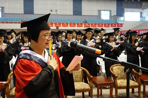 毕业典礼上,在黄丹文老师领誓下,医员工重温医员工誓言——