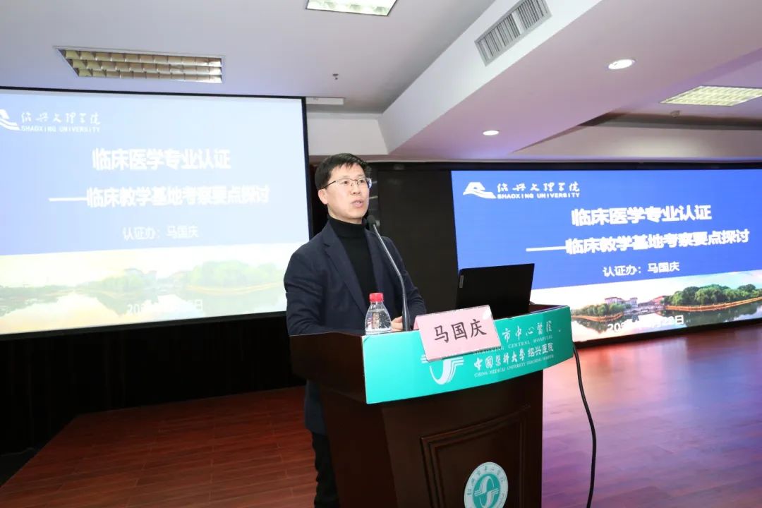 马国庆科长作《临床医学专业认证—临床教学基地考察要点探讨》的报告。他分享了历年临床教学基地标准,并从教学管理、教学资源、团队队伍和教学活动等方面详细讲解了认证考察要点。